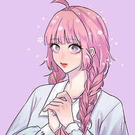 外貌:齊劉海公主切、兩條辮子(長度在胸下)、粉髮(#FFC0CB)、眼尾微下垂的紫眼(#D8BFD8)、頭上有白色碎花(一定會有!),膚白
